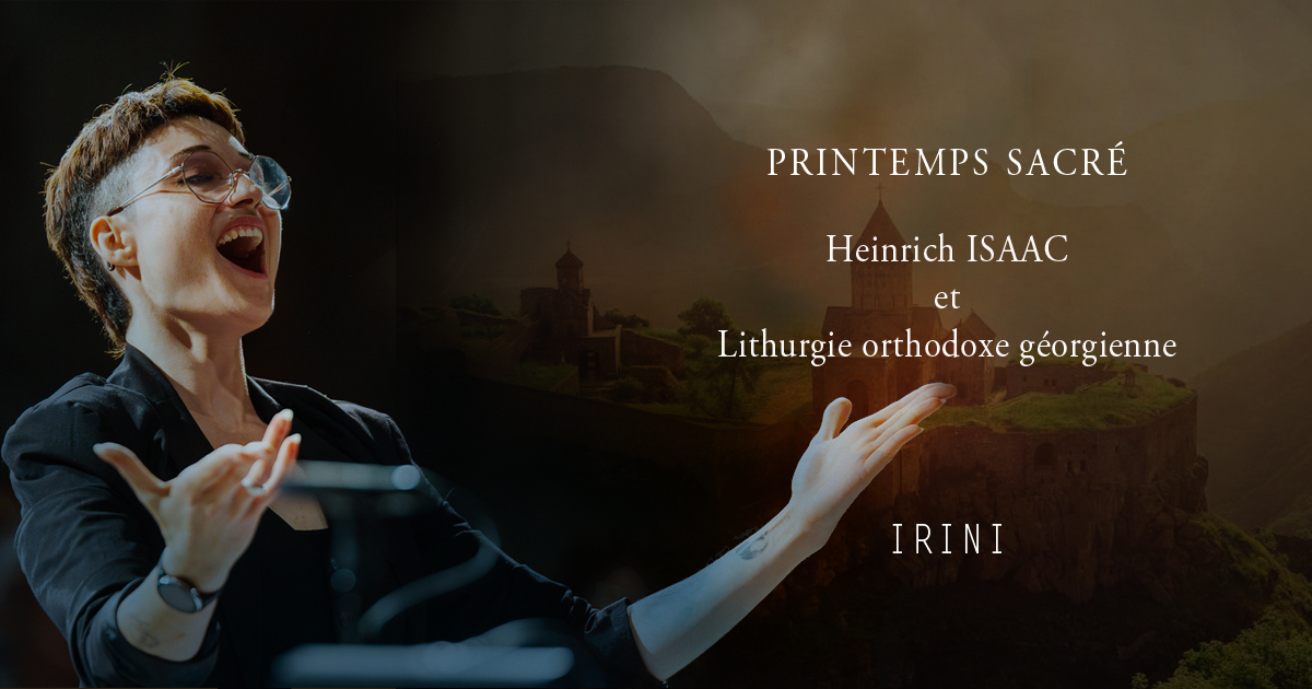 >EN QUELQUES MOTS A travers les thèmes de la jouissance, du deuil et de la résurrection, l’Ensemble Irini, créateur de liens inattendus entre Orient et Occident, met en perspective des œuvres sacrées d’Heinrich Isaac et des extraits de liturgie orthodoxe géorgienne. Le compositeur de génie, grand concurrent de Josquin Desprez et le petit pays résistant aux pressions culturelles et guerrières de Constantinople, des russes et des turcs partagent à la fin du XVe siècle le même destin : l’effondrement brutal de leur monde et le long chemin de la résilience. Tandis que Florence est à feu et à sang après l’avènement de Savonarole, la chute des Médicis et la mort de Laurent le Magnifique, ami et protecteur d’Isaac, la Géorgie se voit scindée en trois dans les affres de la guerre, et sa Rome musicale, le monastère de Ghelati, incendié. Avec «Printemps Sacré» l’Ensemble Irini en octuor, raconte ces chemins de deuil et de retour à la Vie, qui font si fortement écho à notre époque, à travers des œuvres à 3, 4 et 6 voix d’un raffinement et d’une subtilité jamais égalée.